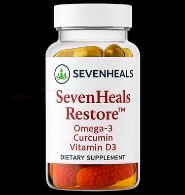 SevenHeals Restore™ Omega-3 · Curcumin · Vitamin D3 Capsule